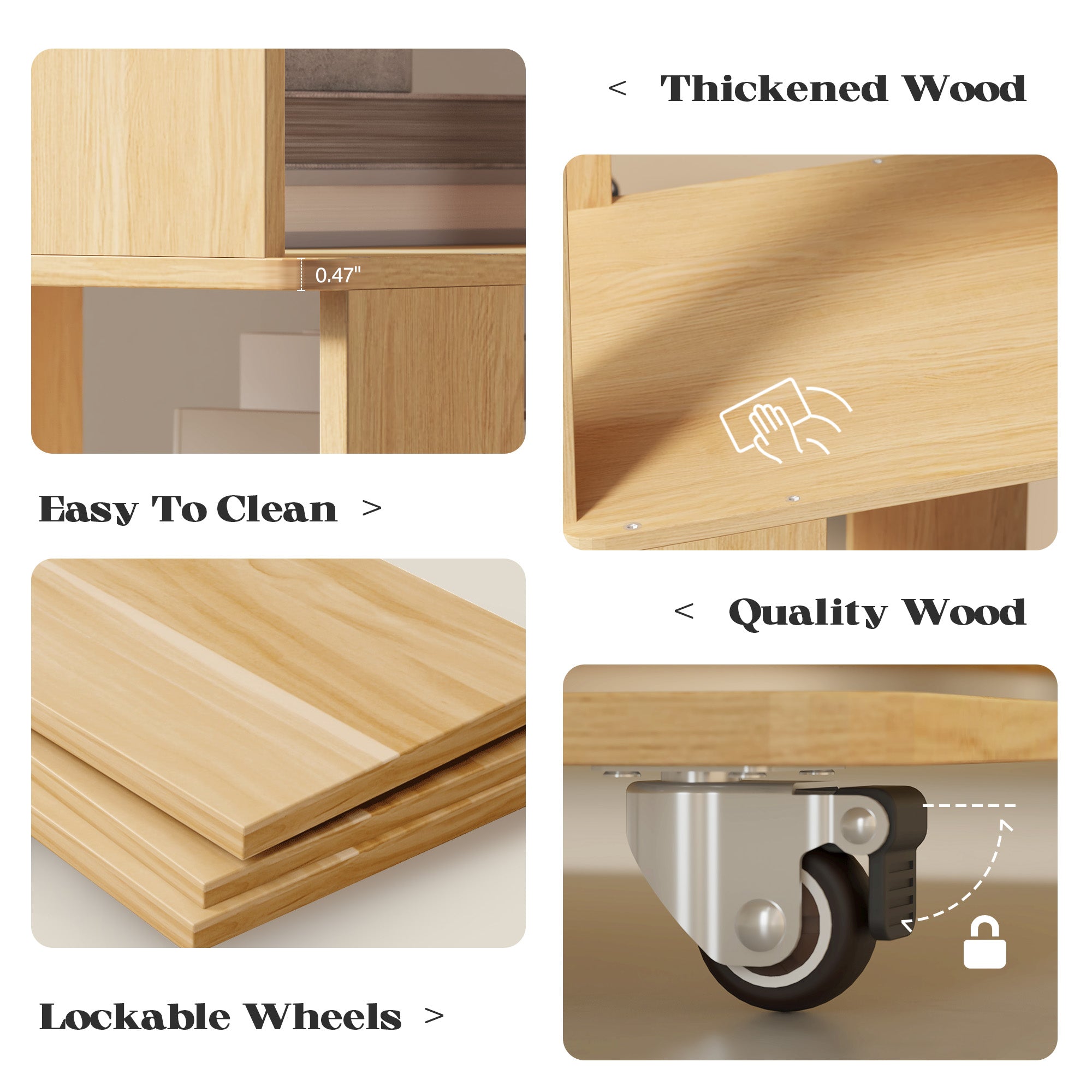 5 Tier Solid Wood Rotating Bookshelf Tower on Wheels, 360° Upgrade Spinning Book Shelf, Revolving Bookcase Organizer, Swivel Bookshelves for Small Spaces, Corner, Bedroom, Kids Room, Office (Natural)